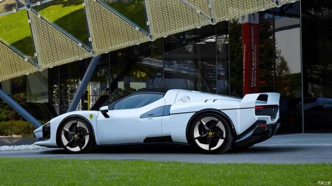 前翼子板末端采用方形輪廓設(shè)計(jì),可優(yōu)化底盤氣流穩(wěn)定性;車門及后翼子板上的巨型三角形中冷器進(jìn)氣口,則借鑒了品牌經(jīng)典的NACA導(dǎo)管設(shè)計(jì),兼顧散熱需求與歷史傳承感。值得注意的是,新車未沿用傳統(tǒng)的“法拉利紅”Rosso Corsa配色,而是采用專屬定制的Bianco SC40珍珠質(zhì)感白色漆面,搭配流暢的車頂線條與圓潤(rùn)的輪拱曲線,既保留經(jīng)典影子又彰顯現(xiàn)代氣質(zhì)。