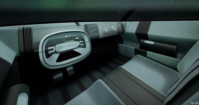 斯柯達(dá)1000 MBX概念車傳承歷史車型的經(jīng)典車身設(shè)計(jì),該車采用對(duì)開式滑門的設(shè)計(jì),后門僅有半扇設(shè)計(jì),隱藏式門把手,車內(nèi)采用2+2的座椅布局。