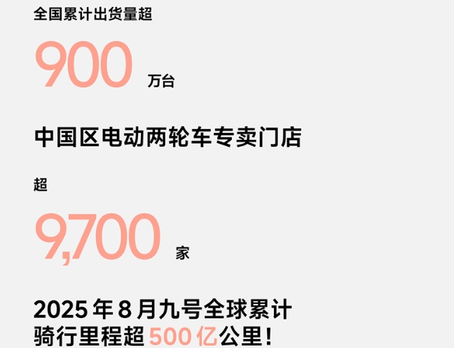 值得一提的是,截至9月初,九號公司旗下智能兩輪電動車中國市場累計(jì)出貨量超900萬臺,創(chuàng)下行業(yè)增長的新紀(jì)錄。尤為亮眼的是,從800萬臺到900萬臺,九號公司僅用了52天,足以看出市場和用戶的認(rèn)可。