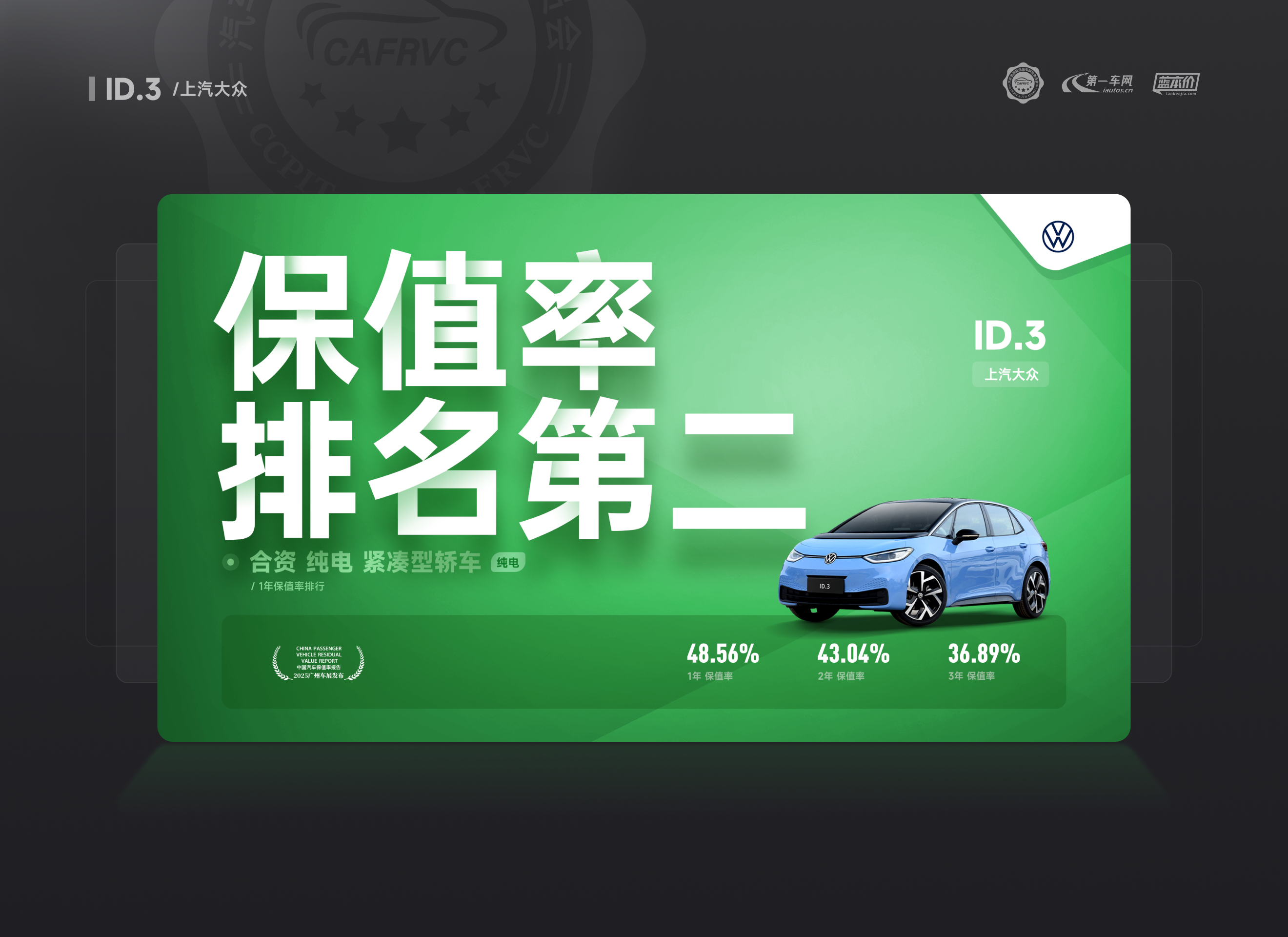(上汽大眾ID.3 合資純電 緊湊型轎車保值率排名第二)