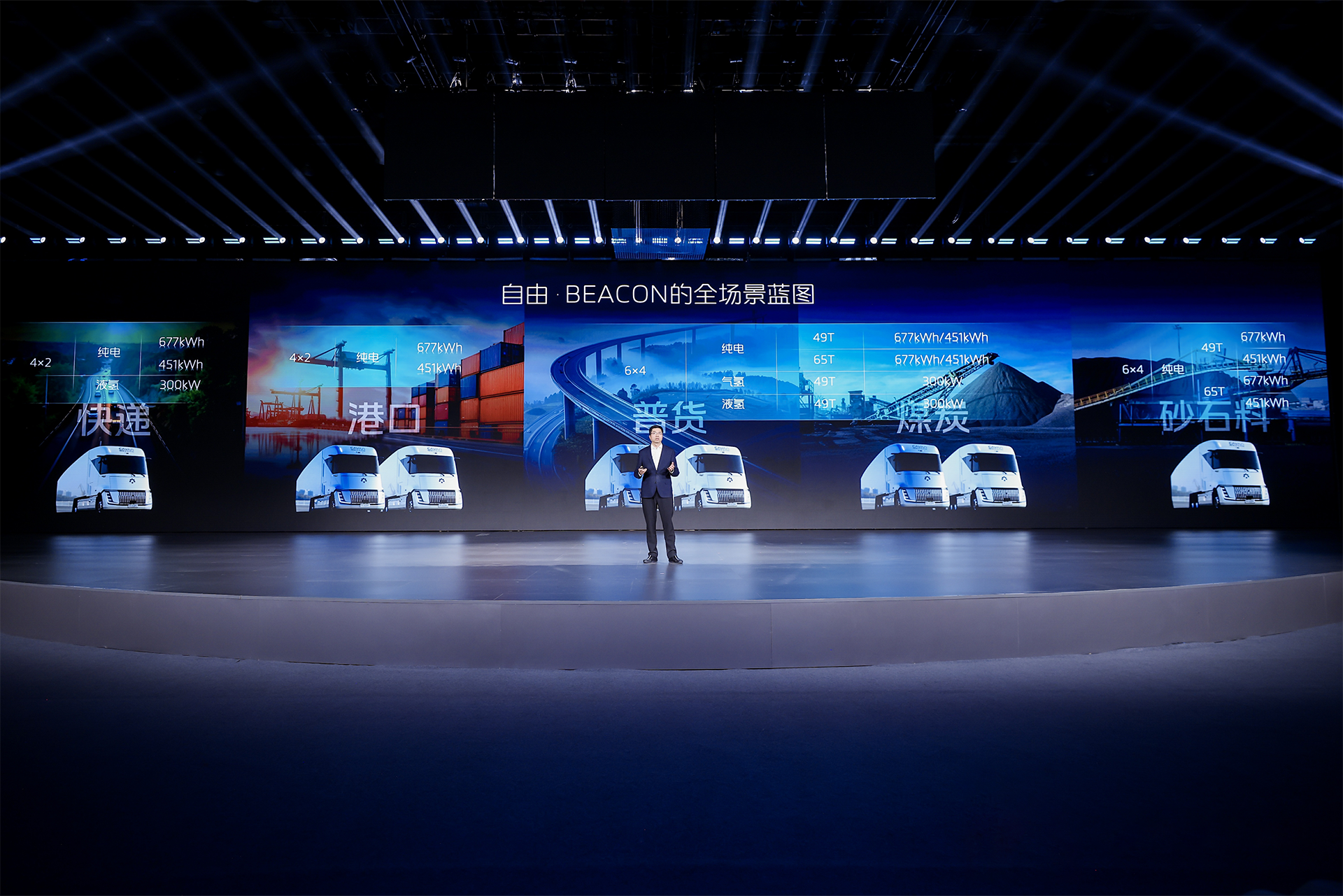 以福田卡文重卡BEACON為例,基于獨(dú)創(chuàng)的一體化平臺,獨(dú)創(chuàng)跨平臺、可拓展、高集成的動力底盤一體化架構(gòu),實(shí)現(xiàn)氫電共平臺與高集成承載。