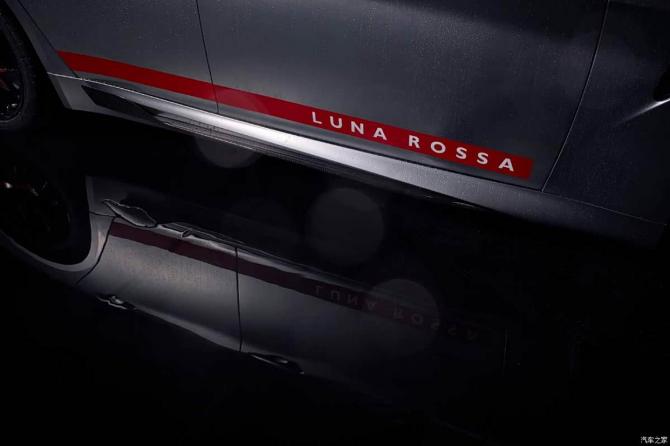 來(lái)看官圖,新車的配色靈感源于2024年巴塞羅那第37屆美洲杯的Luna Rossa AC75帆船,車身采用虹彩效果的漆面展現(xiàn)金屬質(zhì)感,側(cè)裙配備紅色拉花并鑲嵌“Luna Rossa”字樣,19英寸輪圈同樣加入了紅色點(diǎn)綴,配合紅色剎車卡鉗,營(yíng)造出很強(qiáng)的視覺(jué)沖擊力。值得一提的是,該車車標(biāo)也是品牌歷史上首次采用紅色作為底色。