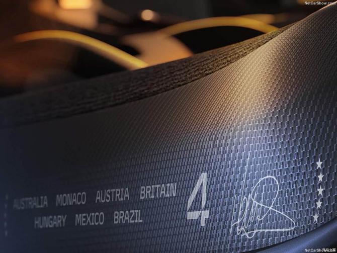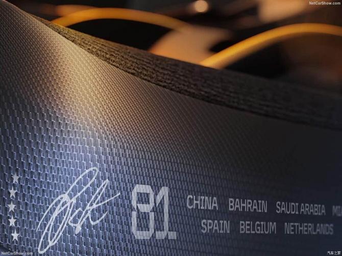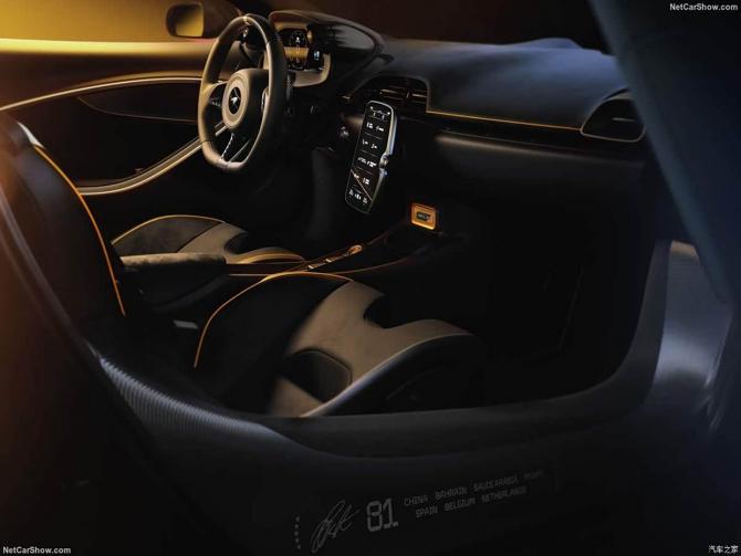 內(nèi)飾方面,車輛以大量Carbon Black Alcantara與Jet Black Nappa真皮材質(zhì)進(jìn)行包裹,細(xì)節(jié)上加入Mclaren Orange橙色縫線進(jìn)行點(diǎn)綴。在座椅頭枕和方向盤處配備專屬標(biāo)識(shí),另外門檻飾板上印有車手蘭多·諾里斯(Lando Norris)和奧斯卡·皮亞斯特里(Oscar Piastri)的親筆簽名以及他們?cè)?025賽季獲得冠軍/桿位/最快圈速的分站,限量標(biāo)識(shí)則鑲嵌在中控下方。